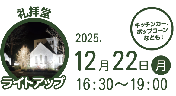 滝乃川学園の礼拝堂と園内が、あたたかな光に包まれます。地域のみなさま、ぜひ遊びにいらしてください。